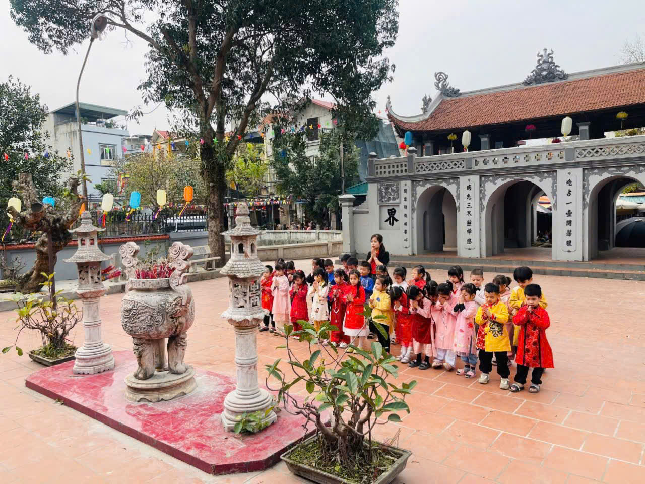 ✨ Cô trò Trường Mầm non Phương Trung 1 cầu một năm mới bình an, may mắn, các bé luôn chăm ngoan, học giỏi 🥰
